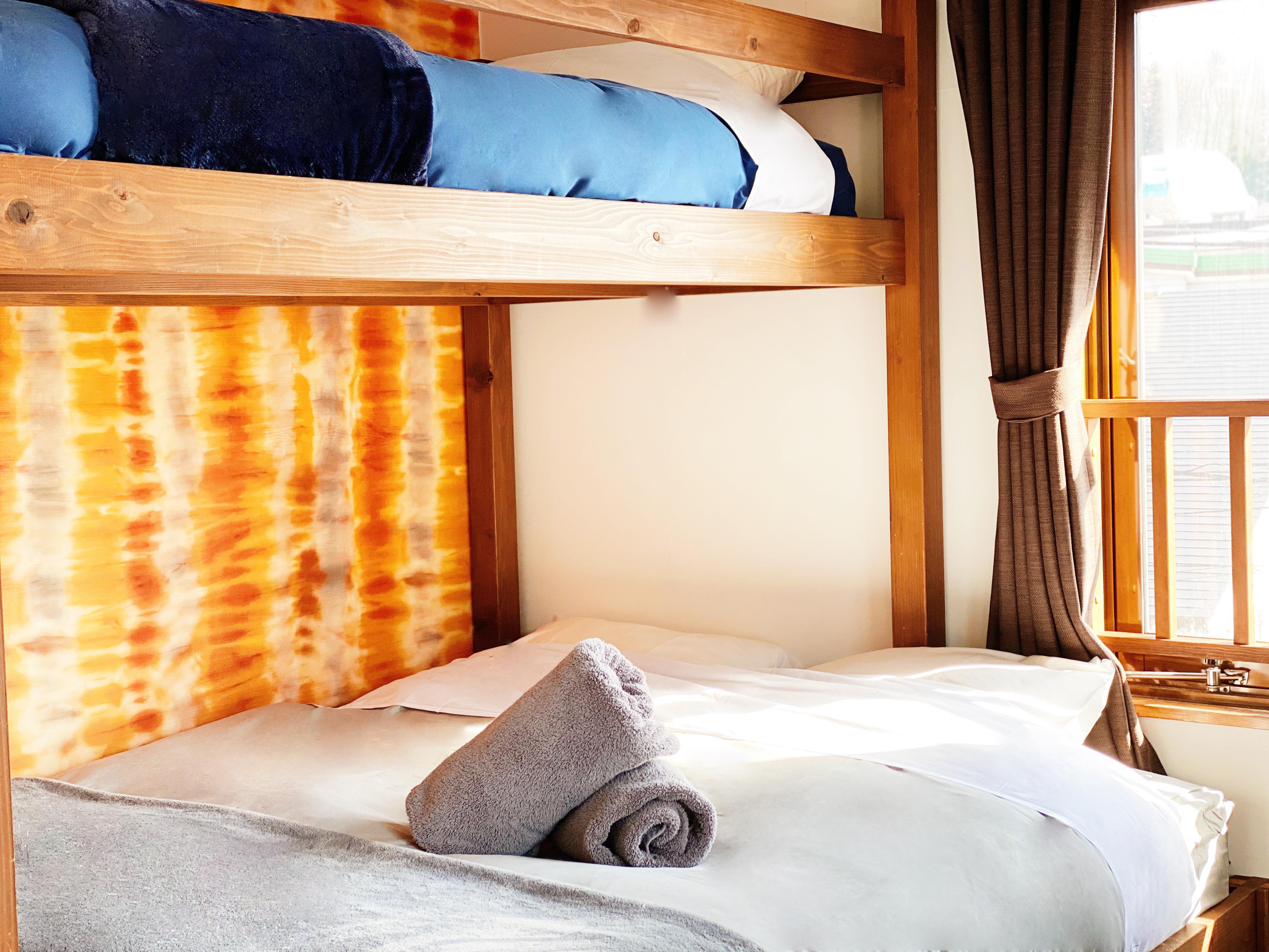 - Custom craftsmen bed in each room with Queen bed, Single top bunk and pull out single bed. All linens provided.